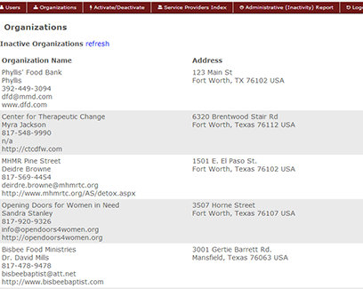 Once organizations register, you will see their entry in your administrative "back end" interface. You can then decide whether to approve them and click the Activate button, which will instantly make their services appear in the Directory on your web site. At any time, you may deactivate a service provide that should no longer be listed, which will remove all of their services from the directory.