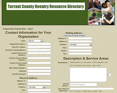 Once you invite organizations to register, they go to your web site and fill out preset forms to create their entry in the directory, including: