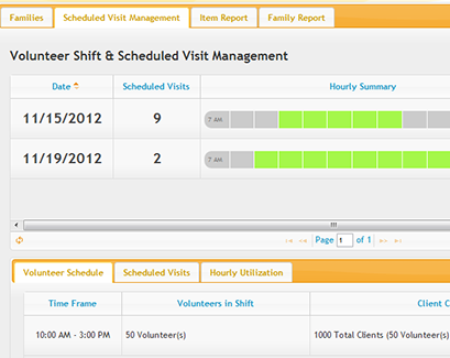 Bar-coded confirmations and check-ins serve as reminders for families of where to go and when to arrive and help ensure accurate records of what items/services are to be received the day of the appointment. Once that family's visit occurs, it becomes a part of Shared Case Management history and appears on all reports for the administrator to view the results of the drive. Family reports show the allocation of items/services across gender, racial, age and other demographics. Item reports show how many goods or services of each type were provided to families during the drive within any date range.